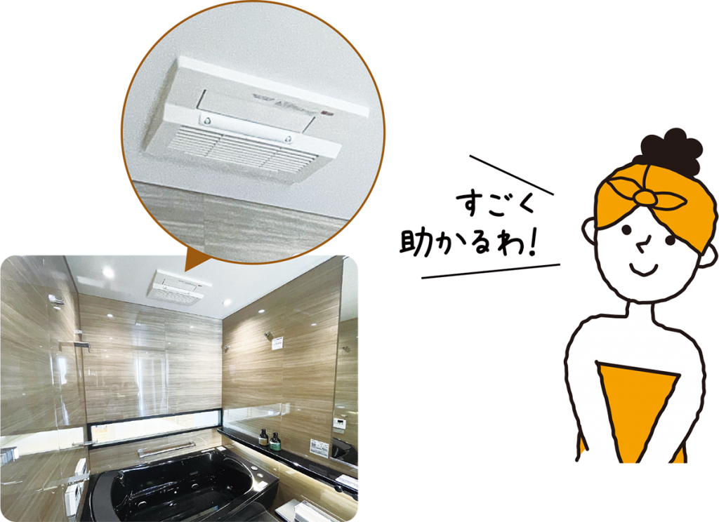 まず考えたいのが「汚れ防止」。浴室の汚れを付着させないためには乾燥している環境を作るのが効果的。24時間換気扇を回しておくか、浴室暖房乾燥機を使って乾燥した環境を保つようにしましょう。汚れはいずれも中和して落とすとGood。少し熱めのお湯(45℃程度)で洗剤を流しましょう。入浴後毎回、浴室全体にまず50℃以上のお湯をかけ、次に水をかけて冷やすことで、黒カビ予防に!