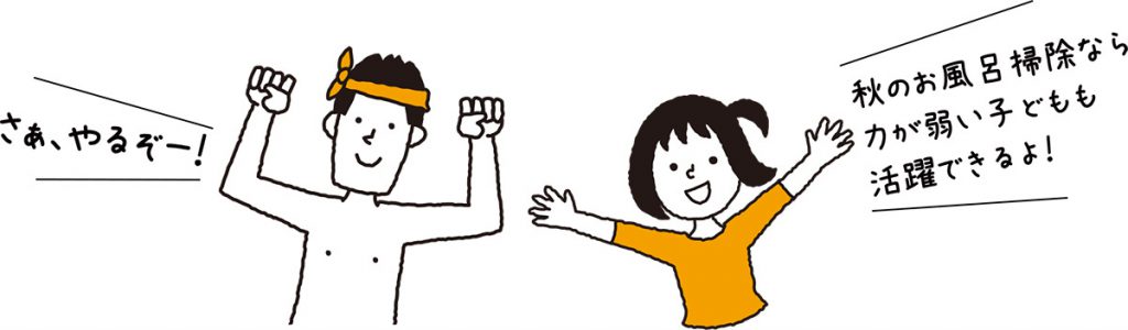 お風呂掃除は、本格的に寒くなる前の秋に行うのがベストって知ってましたか?夏の暑さで汚れがゆるみ、水温も高いので汚れ落ちもよくなります。年末の慌ただしさもなく、気持ちにゆとりを持って掃除に取り組めるのもポイント。早速、家族みんなでやってみましょう。
