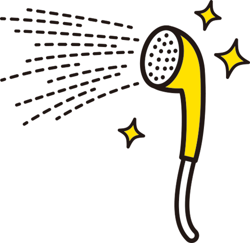 まずは浴室の換気扇を回し、浴室が乾燥している状態でカビ取り剤でカビ取りをします。その後、浴室全体にシャワーで40〜50℃程度のお湯をかけて汚れをゆるめてから浴用洗剤で掃除しましょう。