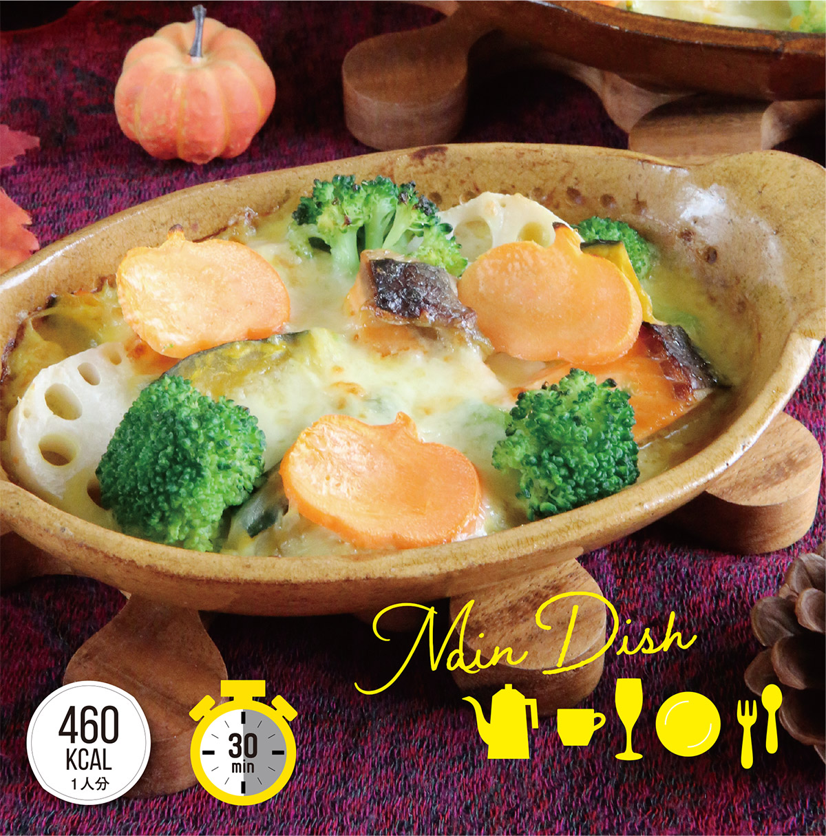 鮭は一口大に切り、塩・胡椒を振り、薄力粉大さじ1をまぶす。玉ねぎは薄切り、かぼちゃは食べやすい長さの5㎜幅に切る。れんこんは5㎜幅の半月切り、ブロッコリーは小房に分ける。