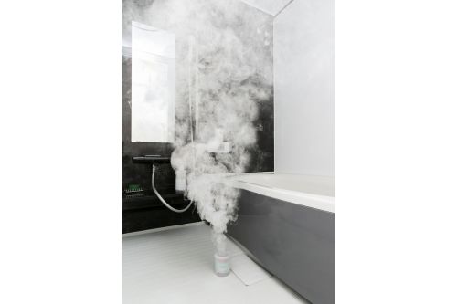 「掃除しづらい天井のカビ予防には、ダスキンの『防カビ剤 くん煙カビガード 』が便利です。除菌成分の煙が浴室のすみずみまで届くので、天井や換気口まわりのカビのもとをしっかり抑えられます」