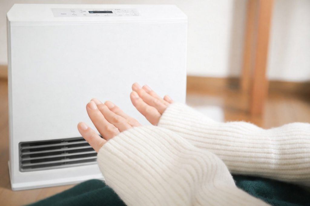 | ガスファンヒーター | ・立ち上がりが早い ・燃焼時に水蒸気が発生し、空気が乾燥しにくい | ・長時間使用するとランニングコストが高くなりやすい ・ 1時間に1回程度換気が必要 |