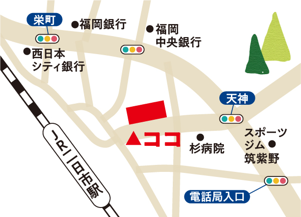 交/JR二日市駅より徒歩1分、西鉄紫駅より徒歩5分