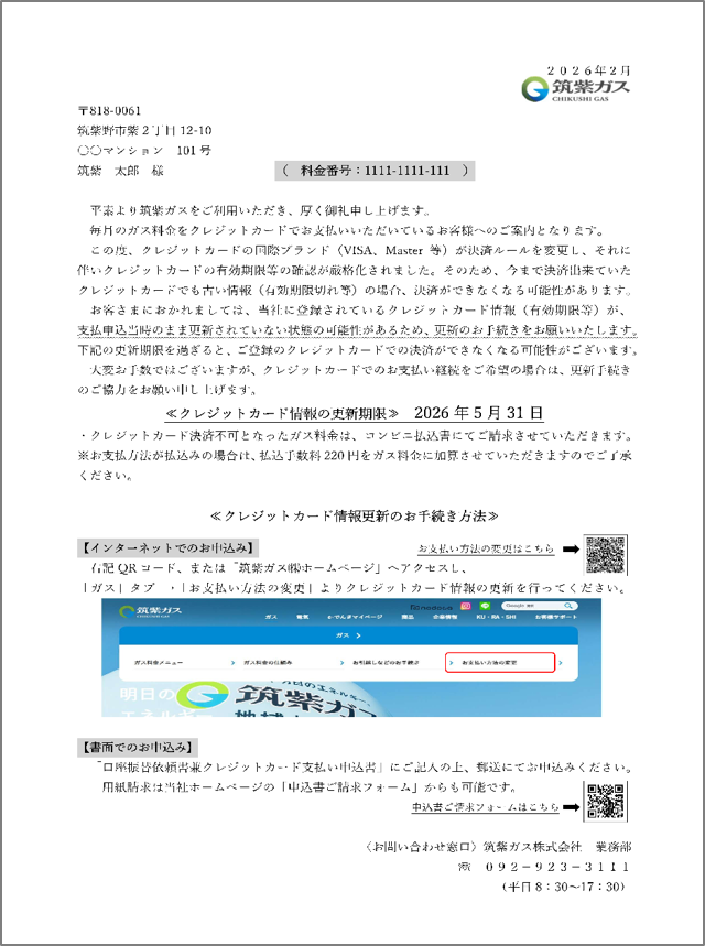 平素より筑紫ガスをご利用いただき、誠にありがとうございます。