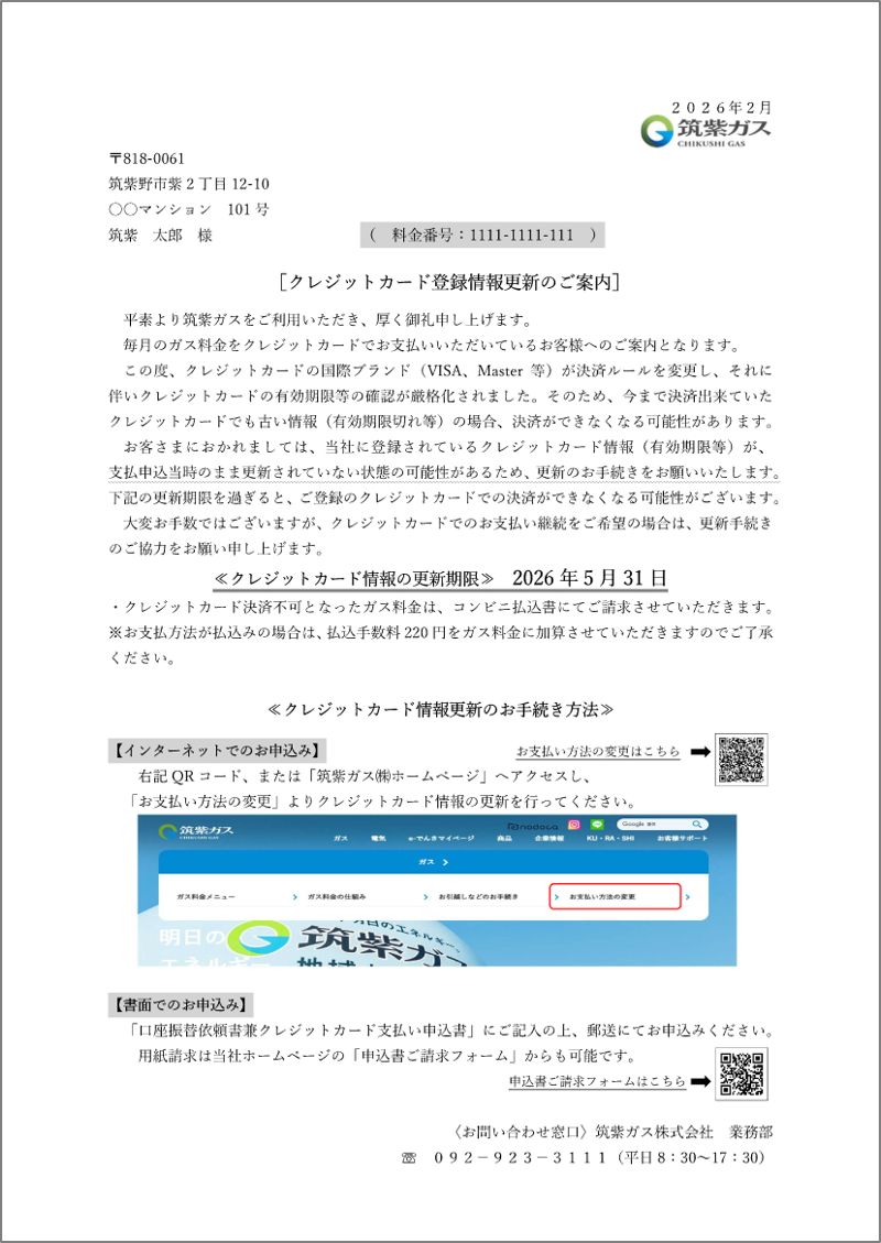 平素より筑紫ガスをご利用いただき、誠にありがとうございます。